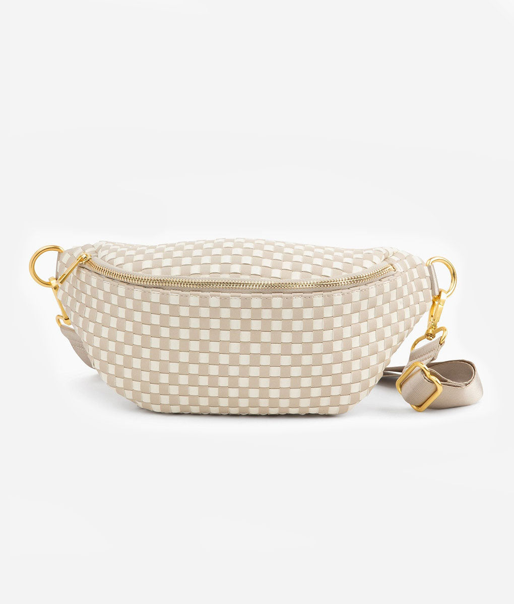 The fan-favorite Fawny Pack is now available in our newest Woven design! The Fawny Pack is a convenient alternative to a bigger, everyday bag. The main zipper compartment can fit all of your must-haves and features an inside zipper pocket for extra security (think cards, ID, and cash). The back has an open pocket that will fit most phones. Pairs perfectly with our Woven Wallet (sold separately).