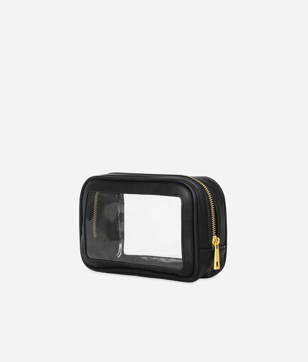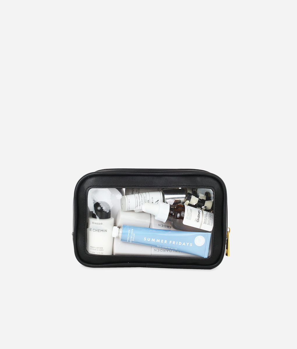Carry your toiletry essentials with the Fawn Small Toiletry Case. The sleek zippered case is made from premium matte faux leather and clear vinyl. It can fit most smaller makeup and cosmetic items, plus an eyelash curler, tweezers, Q-tips, cotton pads + more! The clear view on both sides makes it the perfect size for carry-on toiletries!